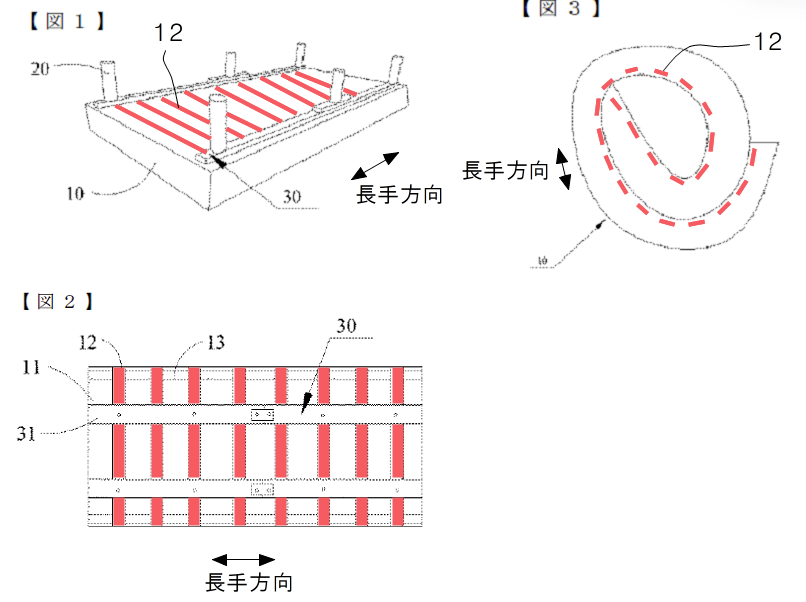 (図中、朱色の支持板(12)は、当方が書き入れたものです)