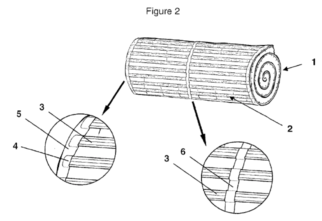 ベッドマットレス1は、スラット3を有しています。(スラットと言うのは、マットレスの分野でマットレスを支える薄い板状の部材のようで、一般的には「すのこ」状に並べられた床板を指すようです。) スラット3は、ベッドマットレス1の側縁に沿って設けられたバンド5のポケット4に挿入されます。この様なベッドマットレス1は、それ自体はくるくると巻くことができ、輸送スペースを最小限に抑えることができる、と記載されています。